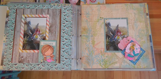 the following Layout is a fave...just love the pic of her and her sis on the driftwood 'throne'...and the Mermaid Anya stamp is a fave ..she is from The Greeting Farm...Which reminds me, I want to order Kimono Anya (she was not in the booth this year)